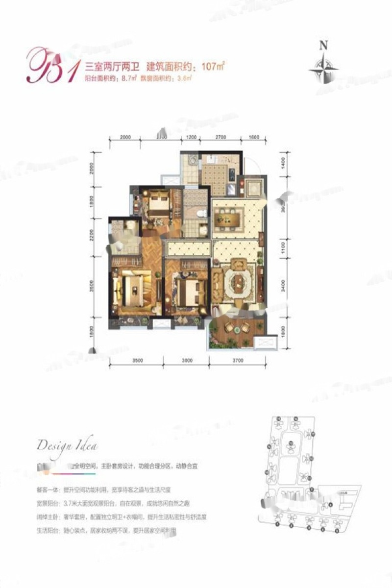 三室两厅两卫 107-3室2厅2卫-107.0㎡