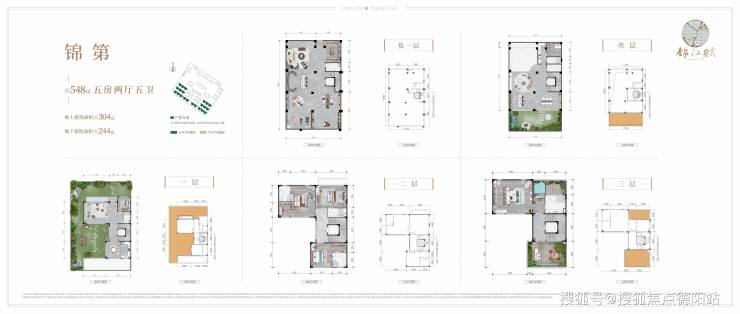 3个户型,面积分别为481㎡、525㎡、548㎡。