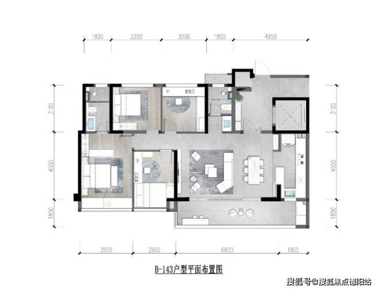 143㎡套四户型在128㎡户型的基础上进行了再升级,主卧套房能容纳超大衣帽间;