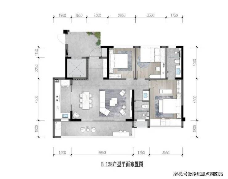 128㎡套三户型的独立入户区域就达到约9个平方,全明电梯入户空间能通风采光,在这个区域解决大部分家政收纳,也可以打造成为小花园或者健身区,满足多场景需求;