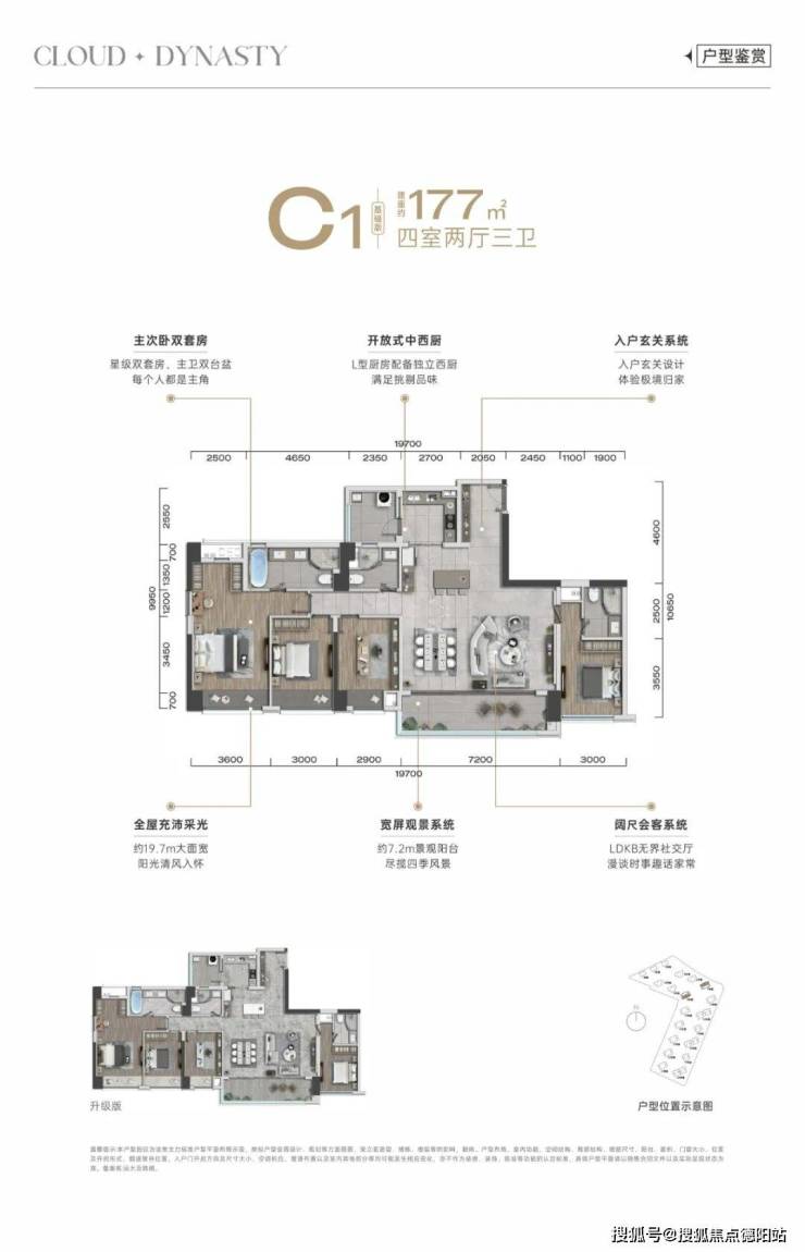 建面约177㎡户型:全屋充沛采光,约19.7m的大面宽,让业主享受到清晨第一缕阳光。
