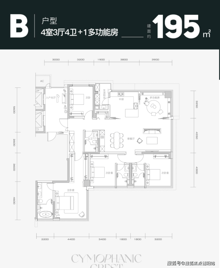4、210-260㎡ 4+2房户型,前厅+主卧套X空间延续C16“天琴澄音”的亮点,这次的“钰屿珑湾”有过之无不及。