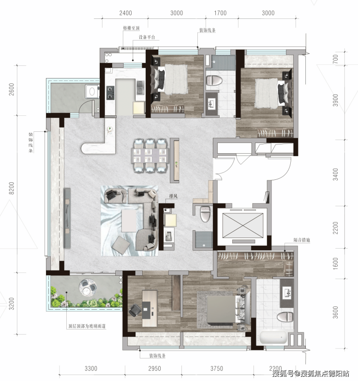 联通式阔尺7m阳台,迎接更多清风阳光·主卧套房设计·户型方正,利用率高