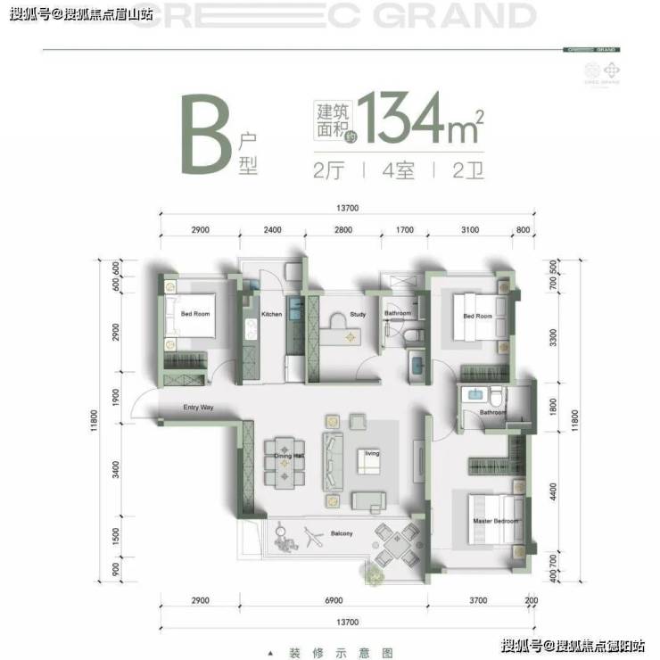 【建面约134㎡四房双卫】