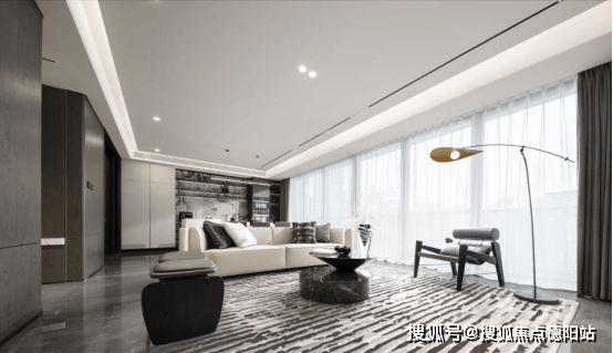 一层约56㎡的奢阔横厅,以超11米大开间+近8.5米巨幅观景窗消融室内外界限,阳光与风景自由流动。地面铺设马可波罗凌霄灰仿石材砖,天然石纹肌理在足下延伸;墙面甄选烟雨江南主题陶瓷岩板,如水墨长卷铺展,共同构筑兼具艺术格调与烟火气的家庭欢聚殿堂。无论是深夜影院时光、节日三代同堂盛宴,抑或孩子与宠物的奔跑嬉戏,皆在此从容上演。