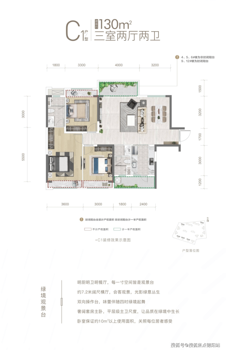 C系列:套三双卫户型(129/130㎡)一个为横厅,一个为竖厅