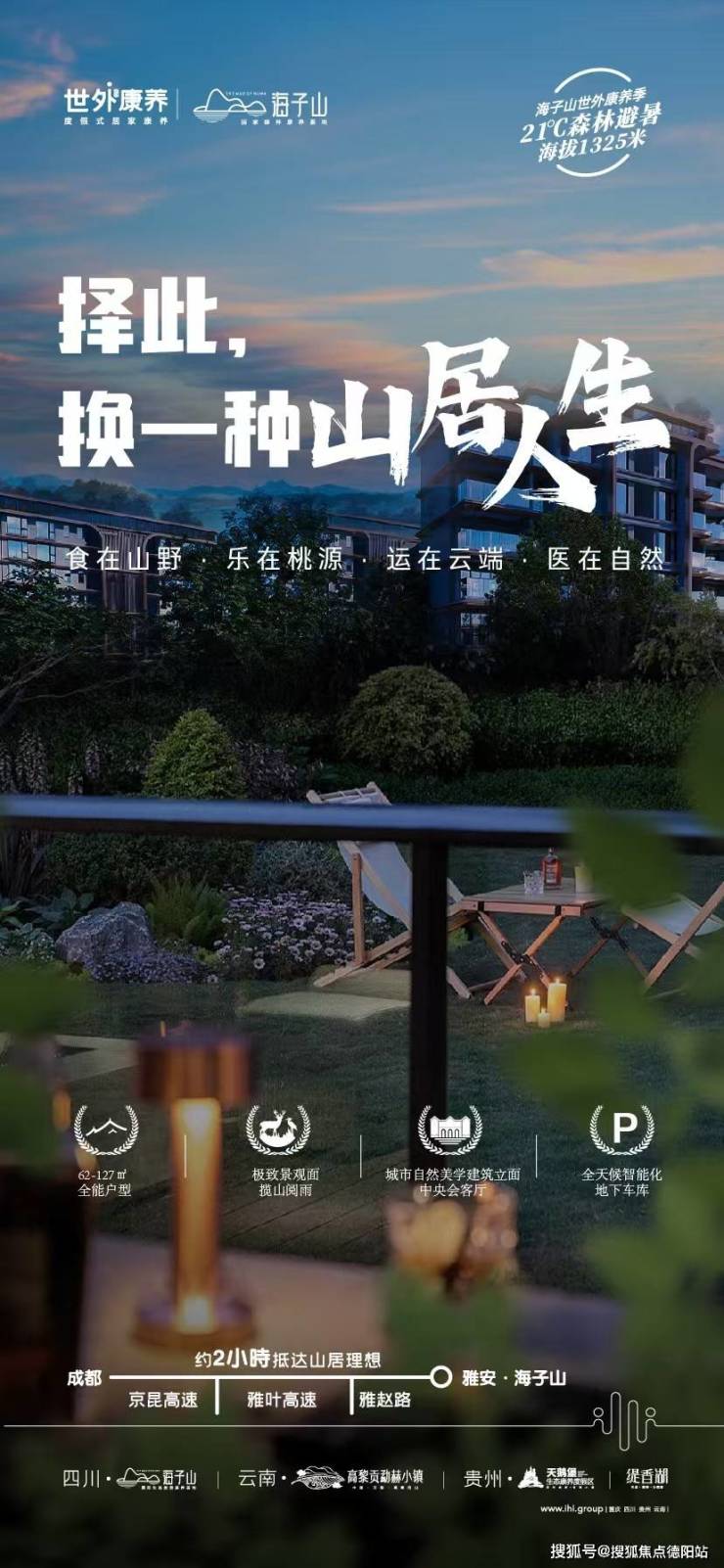 项目地处京昆高速、雅康高速、乐雅高速以及遂洪高速所形成交通矩阵的中心地带,距离成都、青城山等川内商业枢纽或旅游点均不超过200公里,享受大川西全域旅游资源,是真正意义上的两小时旅游经济生活圈。