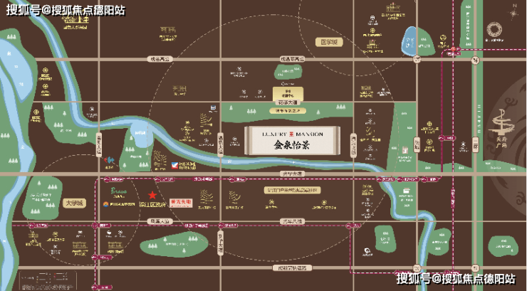 金泉怡景项目分为3个地块打造,这里提到的住宅醒目位于1号地块,北临花都大道,东靠临泉北街,江安河距其步行距离不到600米。