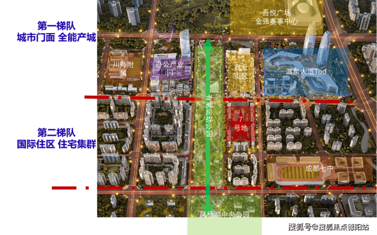 整个4300亩的科创城,最头部的版块就是中央景观生态中轴和城市黄金中轴构成的这个十字区域 而7号地位于景观生态中轴之上的核心中央位置,是整个4300亩科创城CBD第二梯队国际住区中,最紧邻核心资源的地块(离19号线地铁站最近、离商业最近、离公园最近、离七中学校最近),每次归家都穿越约1KM的生态景观中轴。