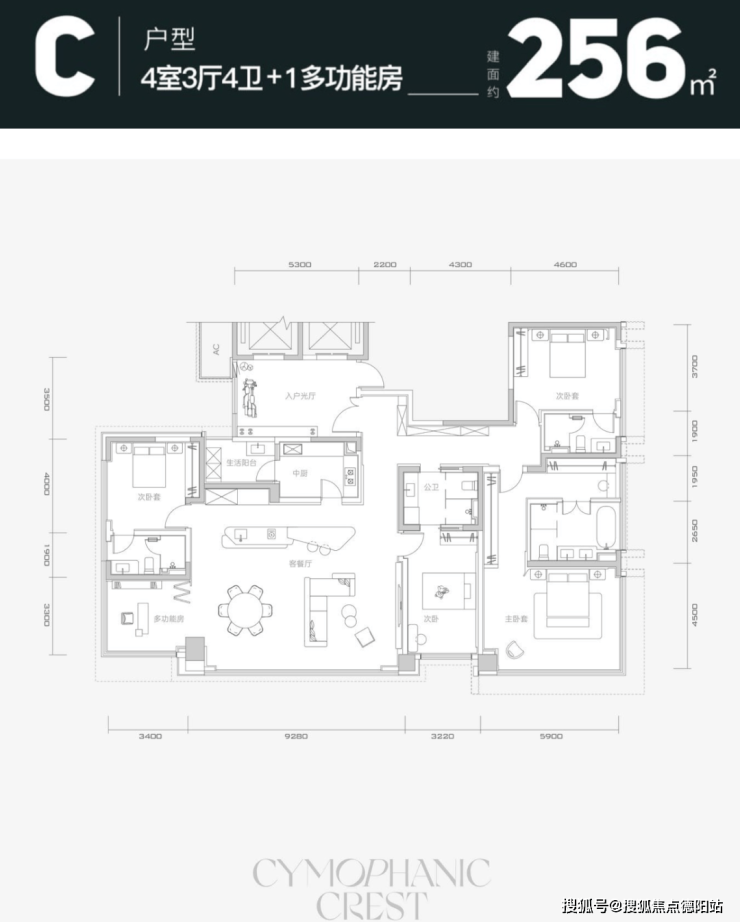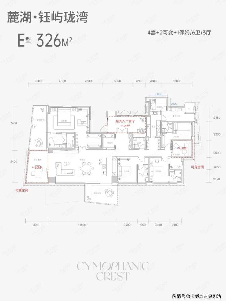 4、210-260㎡ 4+2房户型,前厅+主卧套X空间延续C16“天琴澄音”的亮点,这次的“钰屿珑湾”有过之无不及。