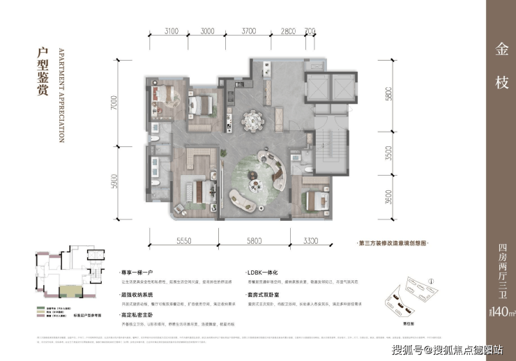 (9米开间,超宽视野,100米楼间距,可做五房,实得约180平米)