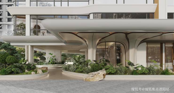 强调空间与景观的极致互动,打破建筑边界,通过设计将自然引入、光线渗透、空间互融等,实现架空层和浮岛花园无界连通,打造社区化的花园式生活场景。