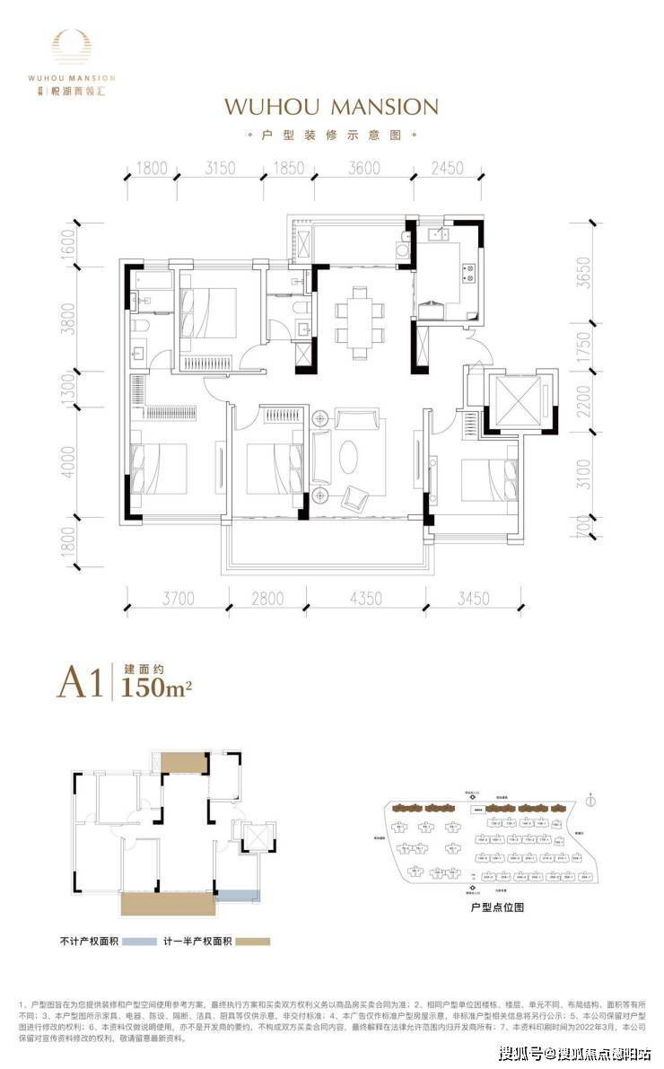 A1户型:3F稀墅平层,四开间南向✨