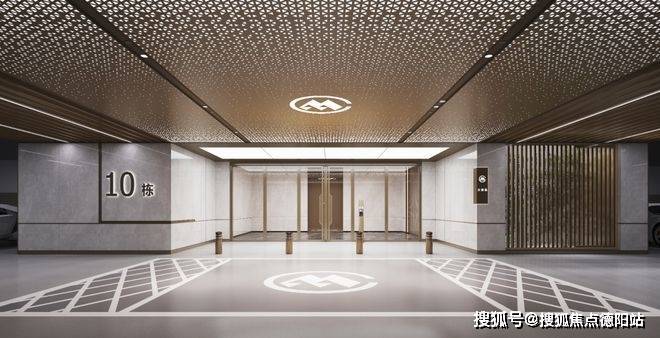 主入口采用门庭与景观一体化设计。超30米阔尺仪门与约5.6米挑高,采用深灰石材墙面与铝板顶饰,彰显尊崇气质;