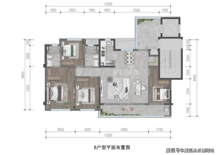 8.7m大阳台,电梯入户,送12㎡ 入户花园,该户型其实也卷出成都130平套四的新高度了。