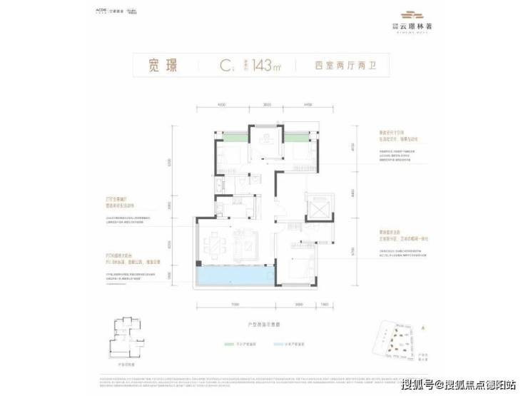 刚改户型豪宅化,空港发展云璟林著143㎡ 户型竟然做到了270°端厅设计 ,这往往常见于180㎡以上大平层户型中。7米开间LDKB一体化公区搭配1.8米进深景观阳台,构建面积超过40㎡的270°环幕端厅,正对公园,推窗即景。