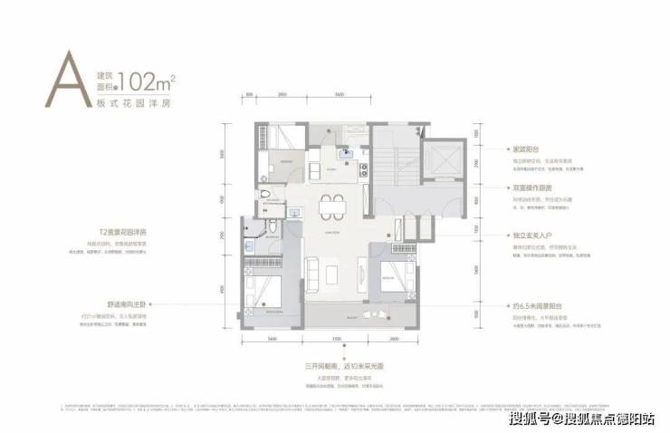 建面约102㎡的套三双卫户型,为T2的8-11F板式真洋房,可以说是上车麓湖公园区洋房的最低门槛产品。南北通透、双阳台景观视野、三开间朝南+近10m采光面、约40㎡竖厅...妥妥大平层的既视感!