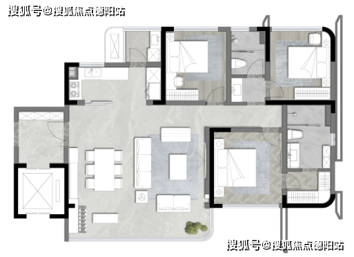 另外,在建面约200㎡的区间内,新绿启境做了2.5套房+书房设计,动区和静区有比较明显的分区。心仪这款户型的小伙伴们,提前重点关注起来!