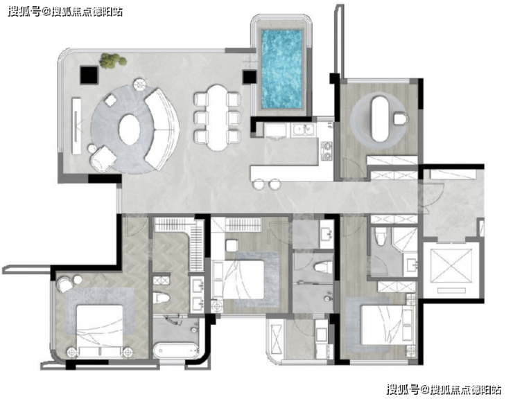 不久前,位于锦江区三圣乡的锦江赋开出建面约322㎡的楼王,又把“私家泳池”的神户型设计呈现在大家面前。