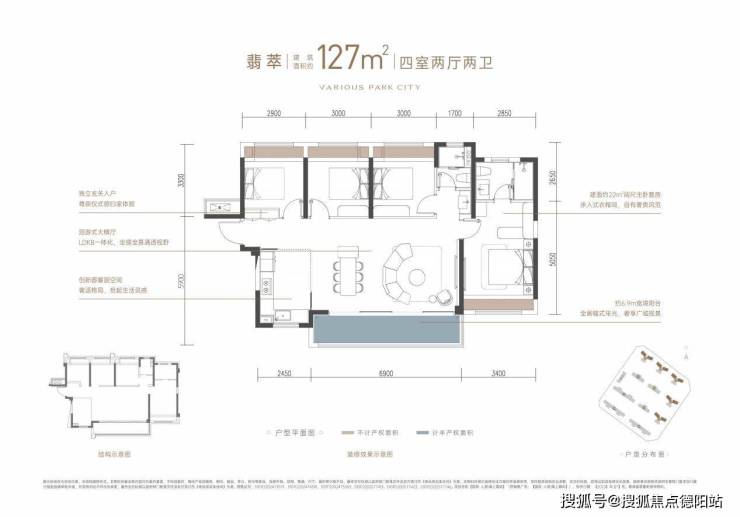 建面约127㎡的户型奢配6.9米大开间、超55㎡洄游式大横厅,均衡“大四房”,真正的舒适平权四房。