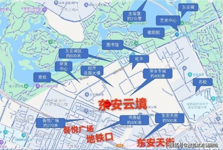 5500亩东安湖生态公园、约1910亩驿马河公园、约32平方公里锦绣天府、全国最大城市森林公园龙泉山森林公园、东安阁酒店、木棉花酒店、图书馆、大剧院、新闻中心等配套环伺;项目占据东安湖中央活力区CAZ核芯位置,项目一线瞰湖高阶产品,引领区域高端商业和楼宇总部发展