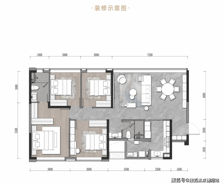 板房设计、南北、东西向通透,南向全尺寸儿童房、7.2m面宽视野横厅;功能分区、动静分离,7.2米超大客厅;3.8米功能型豪华主卧!