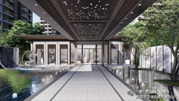水岸浮亭:镜面水景与会客厅,既有水景与植物交相呼应的观赏性,又配套有书吧、休憩坐凳等功能性;