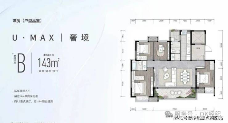 ? 可变式独梯入户空间,尊享私密便捷的出行节奏? 超过14m独立采光面,约7.2m港式宽厅尺度? 罕有约1.8m阳台进深,拓展生活方式的多样可能? 约5米厨房连接生活阳台,提供多重分区,烹饪时光更自在? 套房式主卧搭配独立卫浴间,品味生活的私密独立