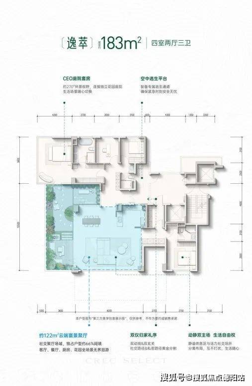2、建面约183㎡逸萃——对标传统220㎡豪宅产品