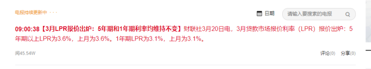 2025年3月20日贷款市场报价利率(LPR):1年期LPR为3.1%,5年期以上LPR为3.6%,以上LPR在下一次发布LPR之前有效。