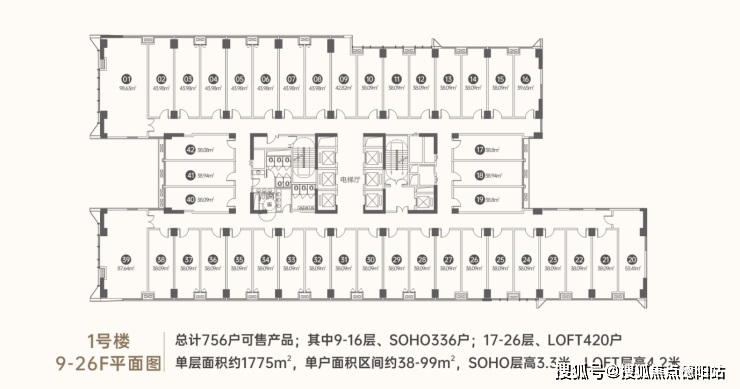 建面约38-99㎡SOHO/LOFT,产品多样,百变空间