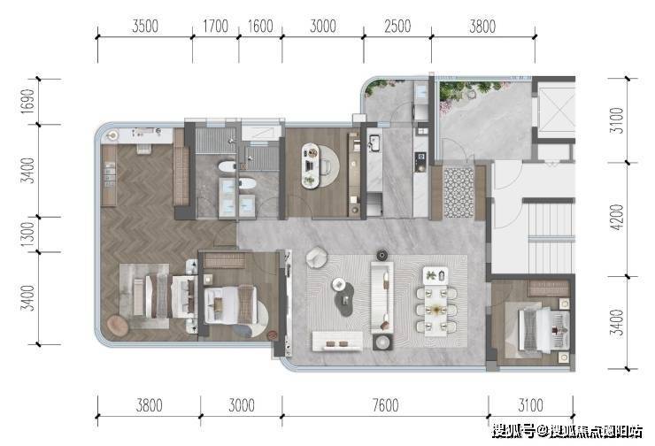 ▌明星户型①:建面约143㎡四房两厅三卫(洋房)· 视野绝佳临河道公园,视野开阔观景效果绝佳,享受天然后花园· 业态稀缺7层真洋房,板式结构,核心地段城市稀缺产品· 私享入户约11㎡私享入户花园,约270°转角光厅,采光视野绝佳· 墅级层高约3.3米别墅级阔尺层高,空间感强· 双套设计四房三卫双套房设计,满足三代同堂,二胎家庭功能需求· 阔尺厨房约9㎡阔尺厨房,可加装岛台设计中西厨· 超大横厅约7.2米LDKB一体横厅,多功能房灵活可变空间,营造板式通透对流空间体验· 奢享主卧约35㎡主卧套房,约10㎡独立衣帽间+梳妆台,独立卫浴且可容纳浴缸,奢侈享受· 超大空间实际可利用空间约建筑面积的108%,天新TOP级奢享