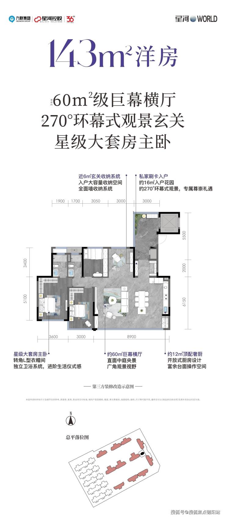 面积区间:洋房143㎡、上叠172㎡、下叠198㎡