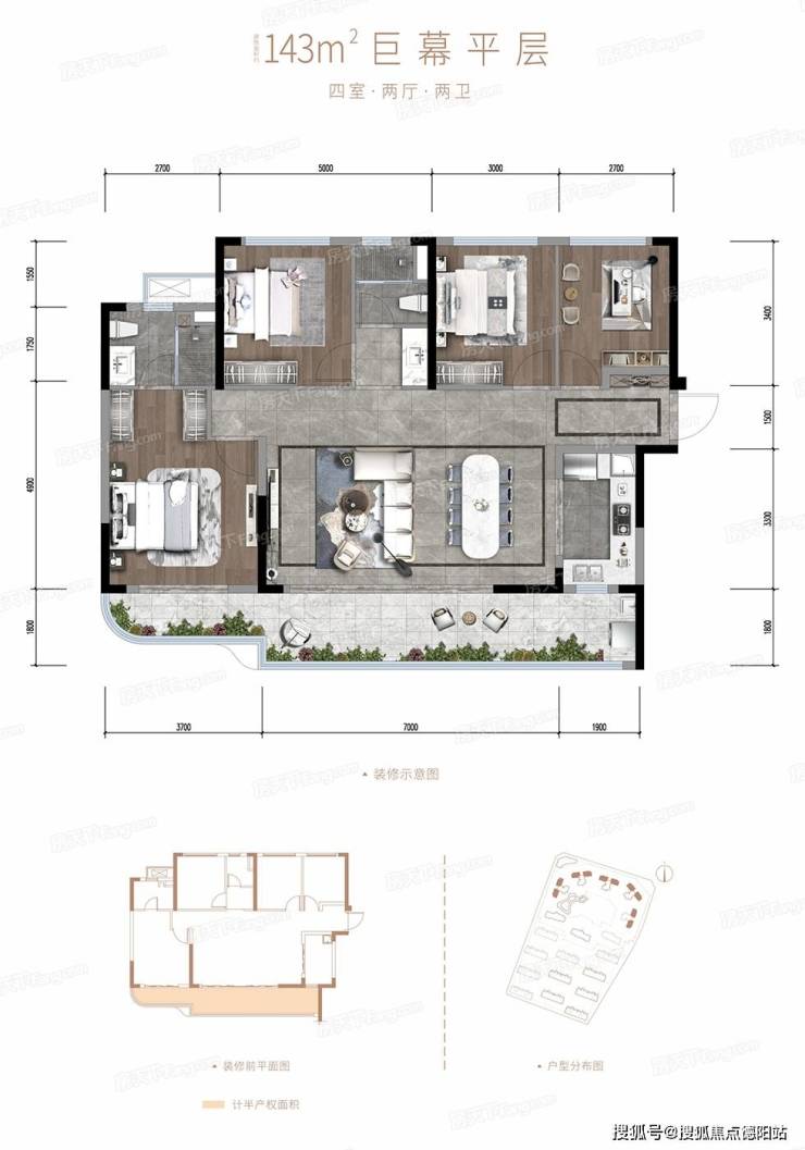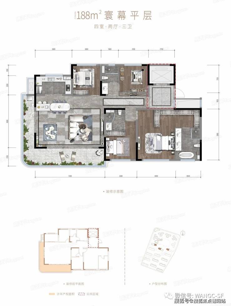 在售面积:高层128㎡套三双卫在中间,143㎡套四双卫在2侧,精装带三大件。