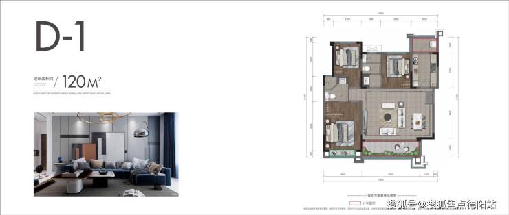 D1户型:120㎡套三双卫(一楼带花园)