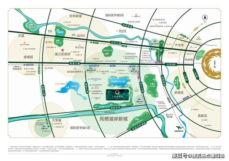 【嘉禾-凤栖和鸣】雄踞凤栖湖新城核心位置,南接凤榭一街,北临凤栖湖北路,享有19号线双地铁站便利,是区域内稀缺的高端改善型墅区。作为政府重点规划的"产城融合示范区",凤栖湖板块集生态居住、产业创新于一体,规划有温泉大道、明光站、规划站三大TOD枢纽,约300亩凤栖湖中央公园、温江文体中心、在建511亩国家级文体中心等重磅配套,共同描绘城市发展新图景。
