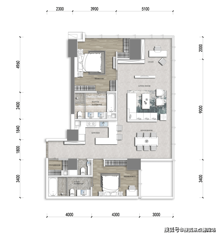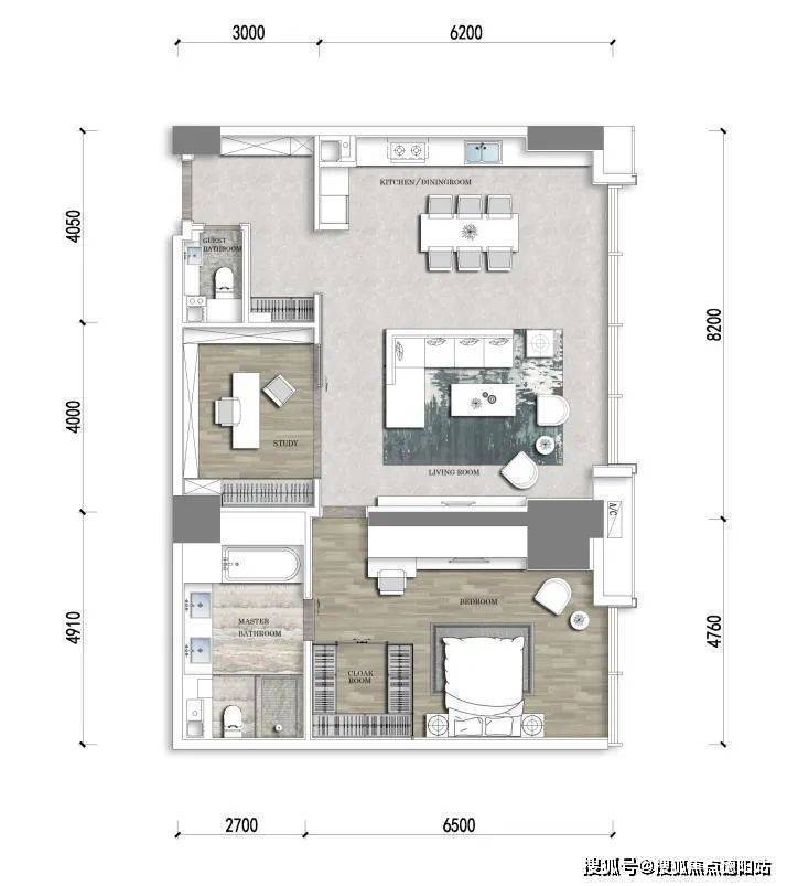它还是目前市面上唯一一个套一双卫的公寓产品,最大化地保证了卧室的私密性。