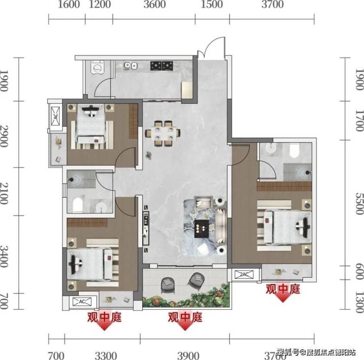 约2000㎡围合式大中庭