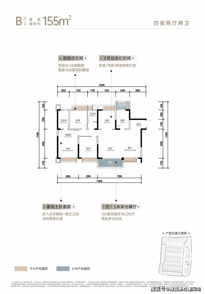 约155㎡品质四房:约7.5米大横厅