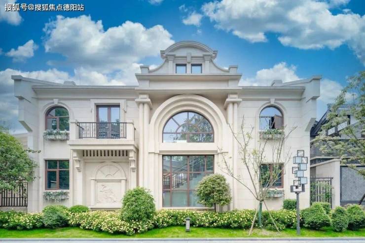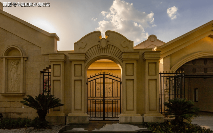 为了让整个海派建筑看上去温雅柔和,整个门框采用大理石材质,在四根柱子采用横竖线条交叉组合,乳白色墙面交叉石灰色的外墙下,小铁栅栏门显得更具有时代感。
