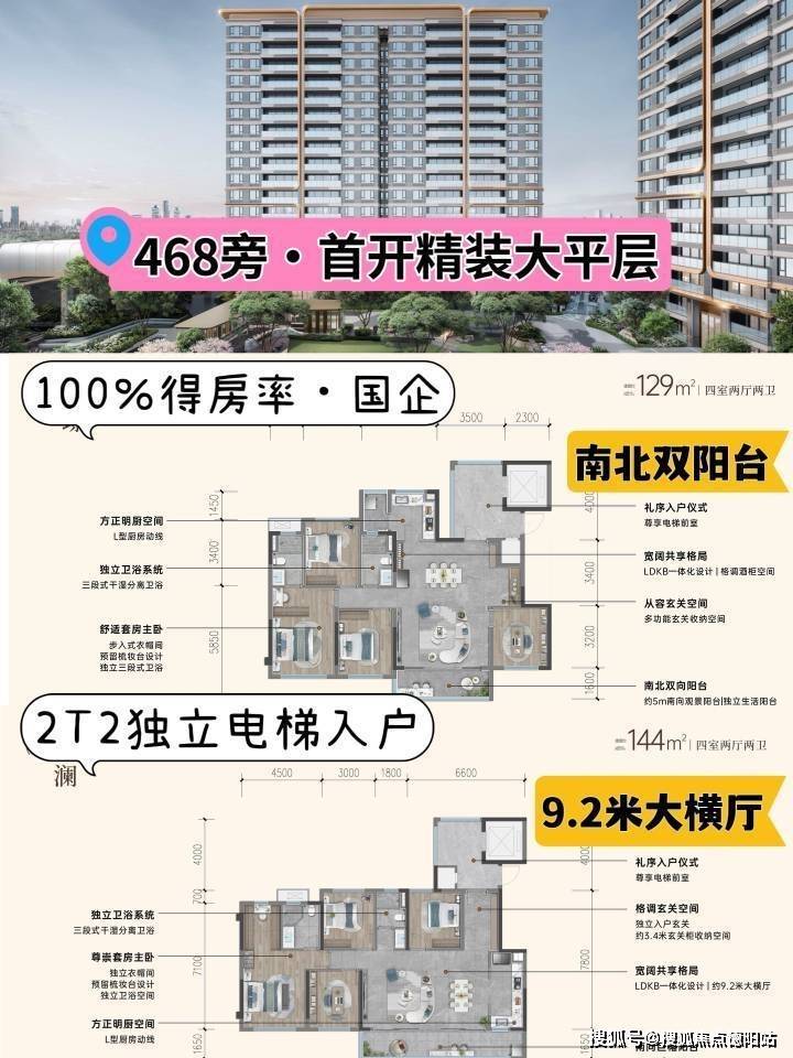 户型:建面约129㎡套四双卫、建面约144㎡套四双卫、建面约189㎡套四四卫