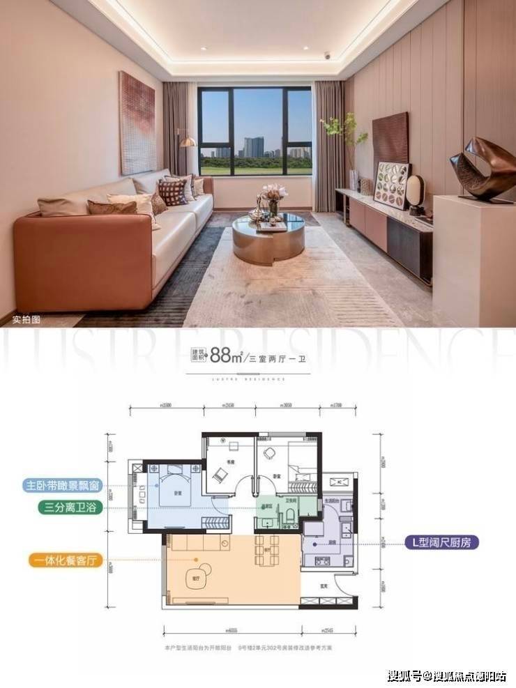 户型:88㎡三室两厅一卫,经典竖厅设计,——满足了购房者首套置业的需求。