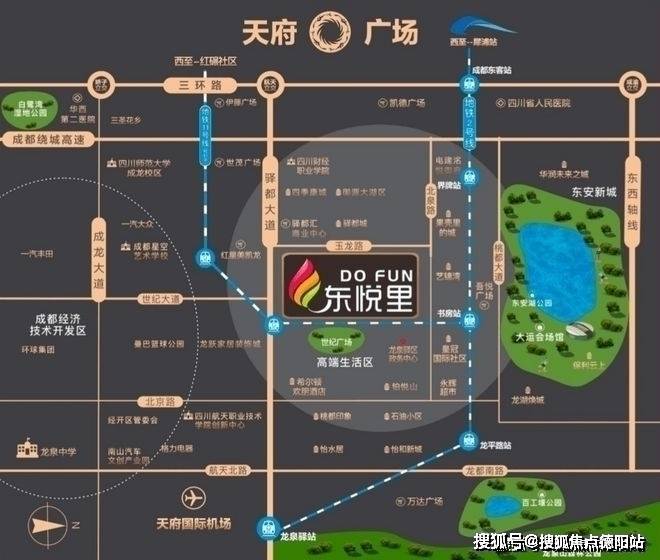 三地铁环绕交通便捷2号线+13号线(在建中)+11号线(规划中)从项目位置到三环,到市中心天府广场,经绕城高速至成都国际城南新会展中心、环球中心。