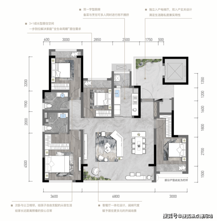 户型解析:17层纯板式小高层,全南北朝向,每一户皆享开阔视野与舒适体验;两梯两户私梯入户,入户独立门厅设计,全明采光,自然通风;约16m朝南面宽、约3.1m墅式层高,享全天候阳光奢适生活;约9.25m阔景巨幕阳台,墅级空中花园,收藏窗外绚丽景观。