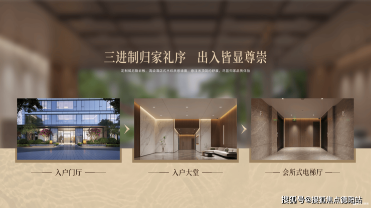·二进制入户大堂——高级酒店式木纹质感墙面,悬浮吊顶简约舒展,尽显归家尊崇感。
