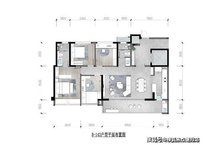 推售面积:建筑面积约128/143㎡(三房/四房)