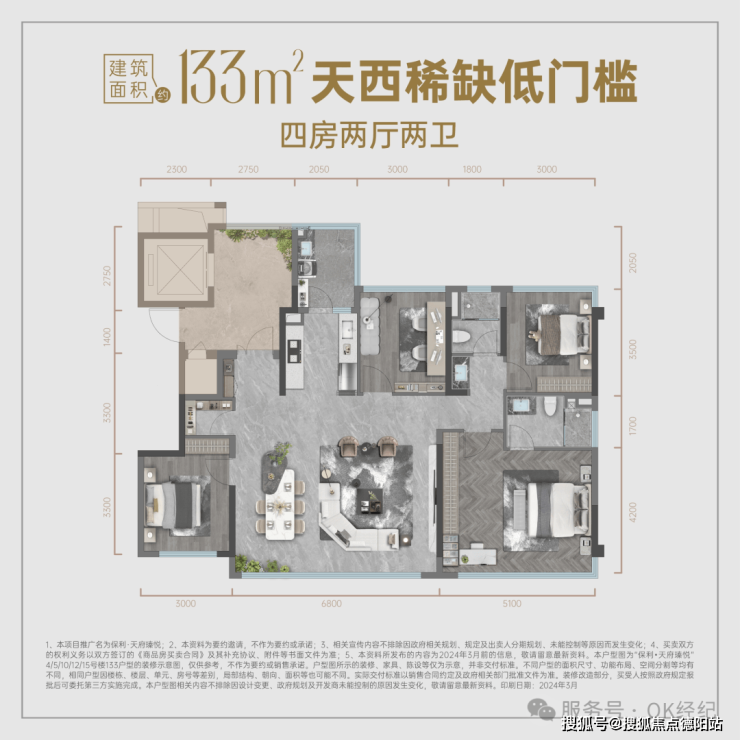 3、非塔尖标准不筑:旨在服务城市前15-40%购买力,打造与其对应的高端改善产品——深入研究客户需求,全成都成交中位数面积133㎡,基础需求为四房+可变空间;天府瑧悦主力户型以133-143㎡首改四房为主,188㎡再改为辅,搭配120㎡首置填补区域市场空白。