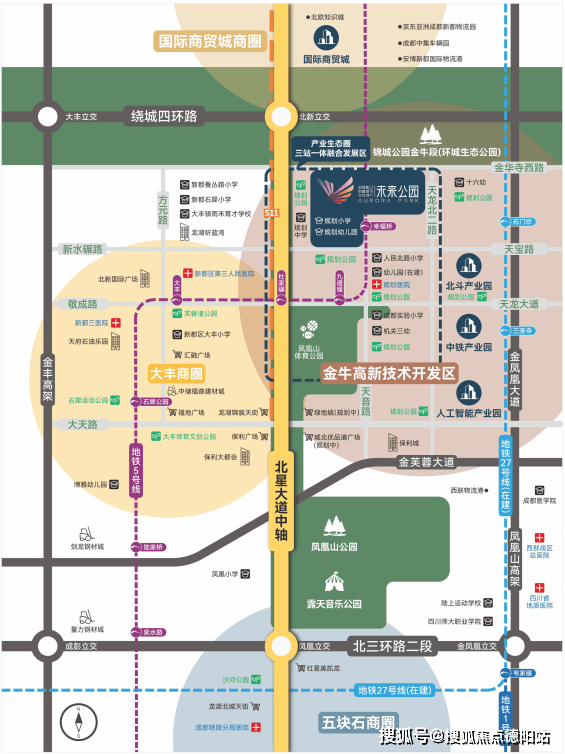 十四五规划引领,金牛区“一核三轴”聚焦天府轨道城市发展功能轴具备“北中轴+城市发展预留用地”的幸福桥,成为构建天府成都北城新中心的唯一可能。