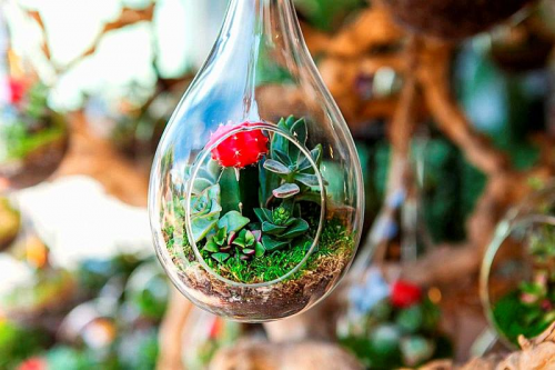 ▲手工制作完成的多肉微景观
