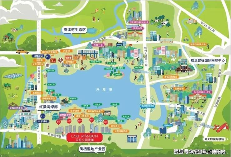 约4500亩兴隆湖,是国内唯一座符合“欧洲蓝”标准的公园湖;(数据来源兴隆街道官方数据);约4500亩鹿溪河生态公园;(数据来源搜狗百科);约3450亩天府中央公园,享受城市最宜居的顶配生态资源。(数据来源百度百科)